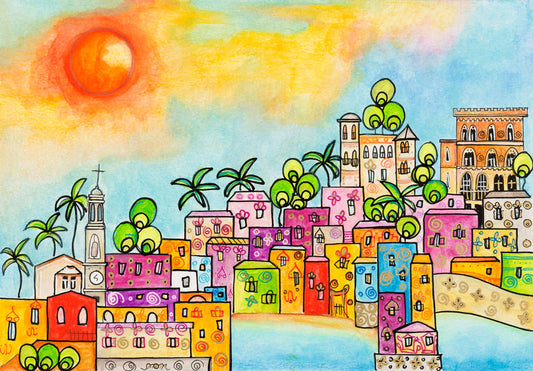 Stampe a pigmenti di colore di varie dimensioni, su pregiata carta Hahnemühle "German Etching" 310g/mq, Disponibile solo opera o con cornice pregiata in legno laccato.